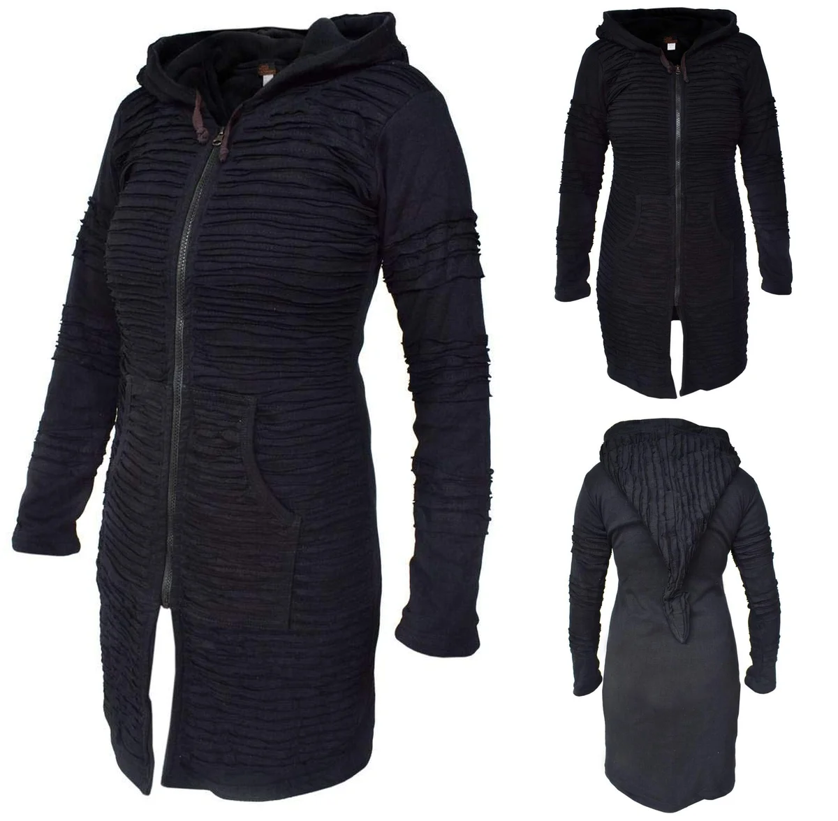 Este abrigo largo de Gheri, en un profundo negro, está diseñado para la mujer que abraza la estética gótica, metalera, punk o steampunk. Perfecto para mantenerte abrigada en las noches frías o para añadir una capa de misterio a tu atuendo diario.