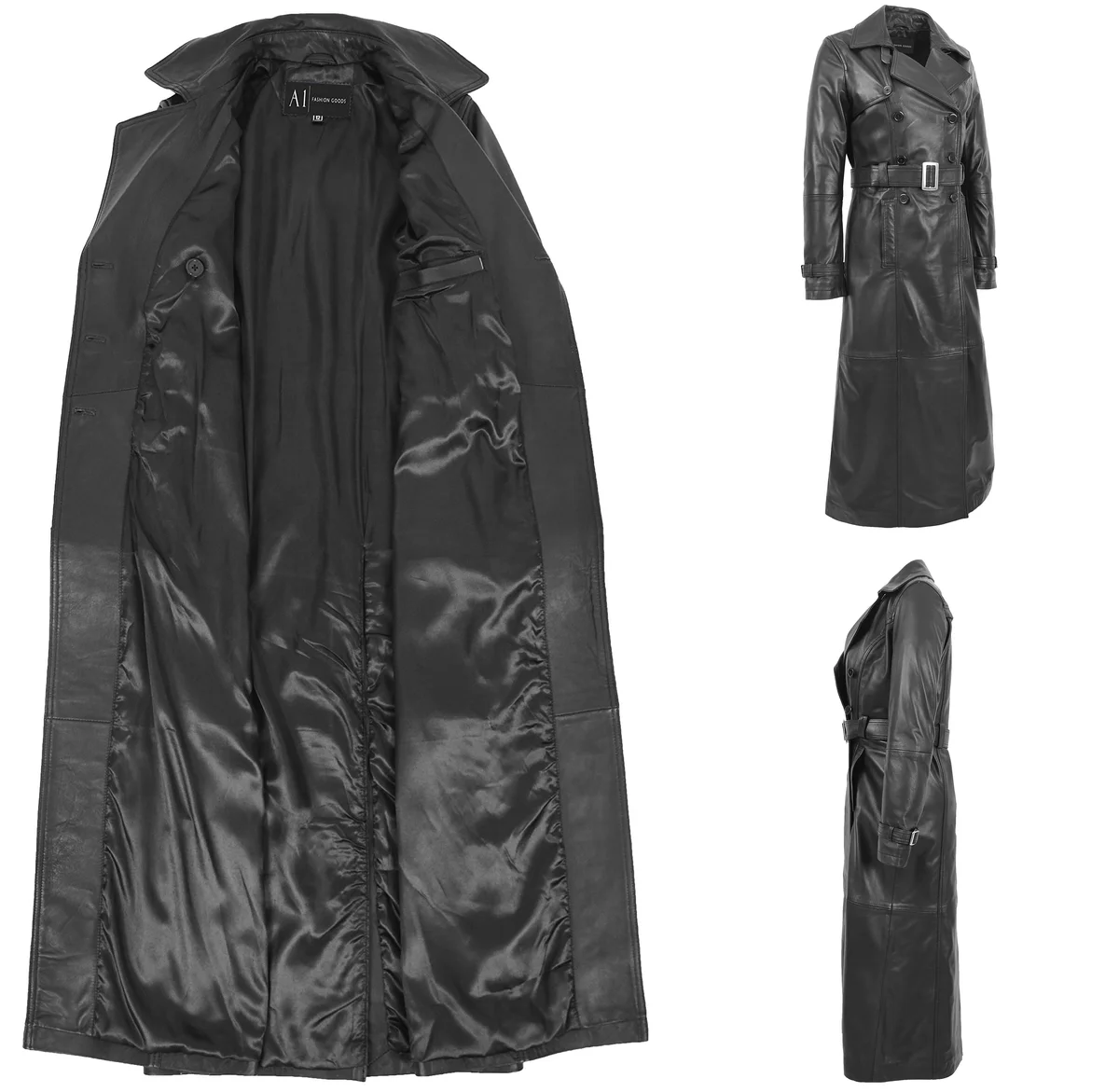 Este abrigo largo de cuero negro hasta el tobillo es la pieza central que tu guardarropa gótico, metalero o steampunk estaba esperando. Diseñado para quienes buscan una declaración de estilo audaz y duradero, este abrigo no es un mero accesorio de temporada, sino una pieza clave para eventos especiales y para elevar tu look diario.