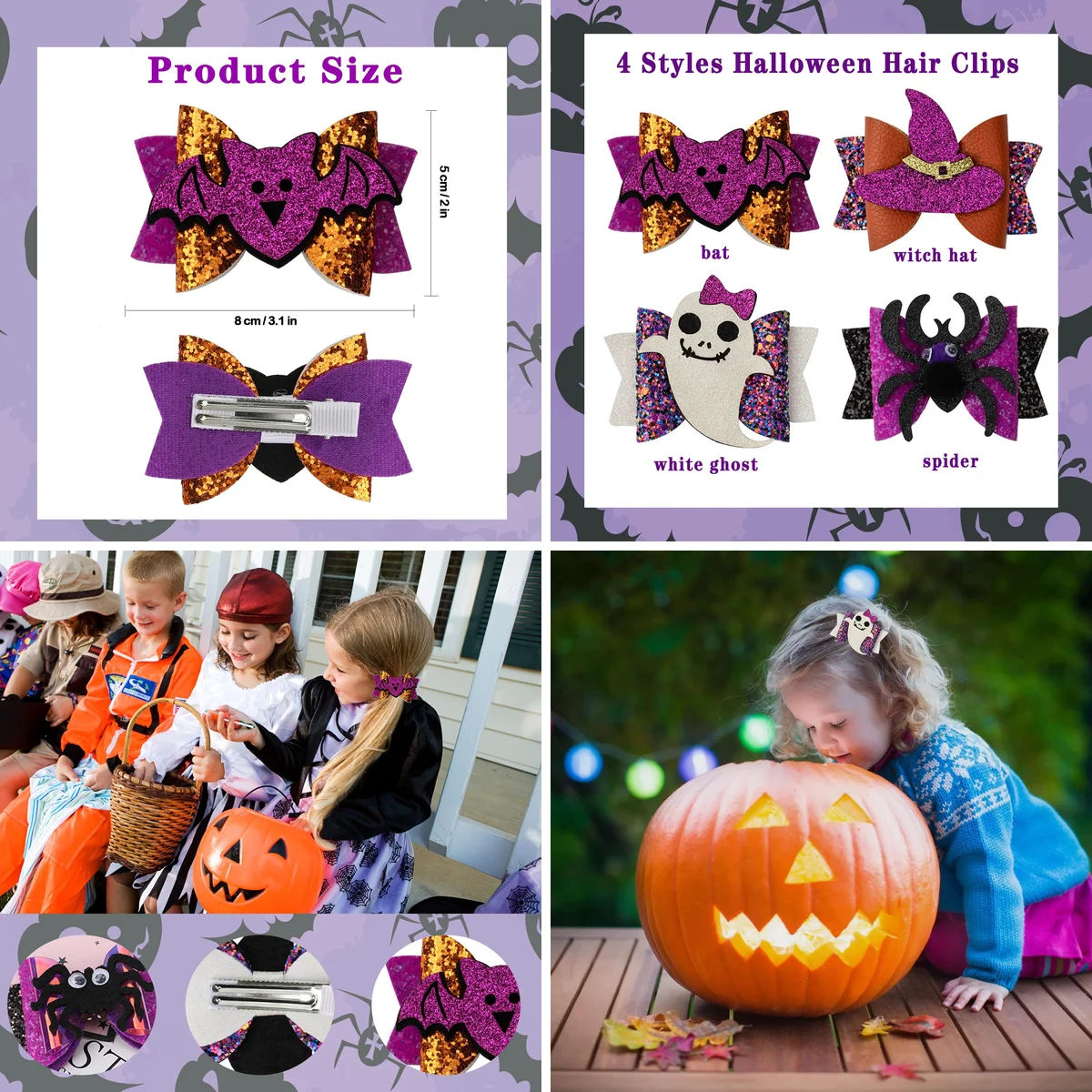 ¿Buscas el detalle perfecto para tu atuendo de Halloween, una fiesta temática o para darle un toque oscuro a tu día a día? Estos clips de pelo con motivos de murciélago, araña, fantasma y sombrero de bruja son la solución. Diseñados para destacar en eventos especiales, ofrecen un brillo que captura la atención, ideales para mujeres y niñas que aman la estética alternativa.
