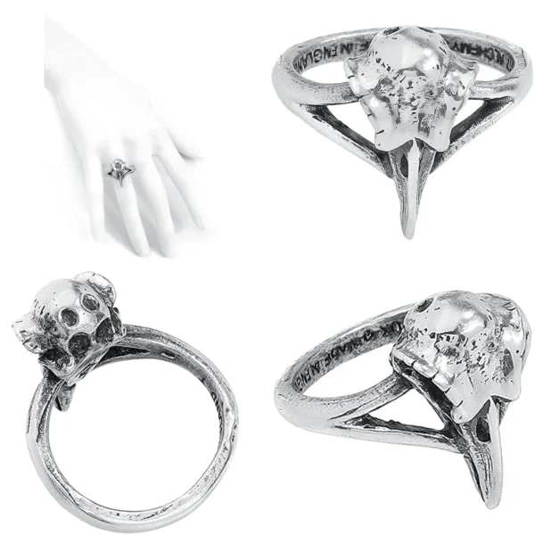 • Diseño: Réplica detallada de una calavera de cuervo, con un tamaño «pequeño» que lo hace versátil para usarse en el dedo meñique o como un toque sutil pero impactante.