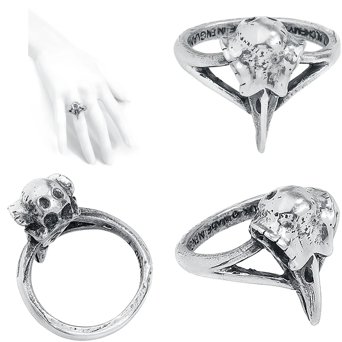 Este anillo de calavera de cuervo, obra maestra de Alchemy Gothic, no es un simple accesorio. Diseñado para quienes abrazan la estética oscura y alternativa, desde el gótico más profundo hasta el metal más salvaje, este anillo es una declaración de intenciones. Ideal para quienes buscan una pieza que destaque en cualquier atuendo, ya sea para una noche de concierto, un evento temático o simplemente para llevar tu identidad contigo cada día.