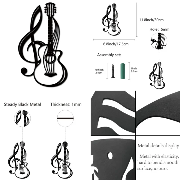 Para los que entienden que el hogar es un reflejo del alma, esta pieza de arte mural en hierro forjado con diseño de guitarra negra es más que un simple adorno. Pensada para espacios que gritan personalidad: tu rincón de música, el balcón donde fluyen las ideas o esa pared que pide a gritos un statement. Olvida lo genérico; esto es para quienes buscan añadir un toque de estilo crudo y auténtico a su decoración interior o exterior.