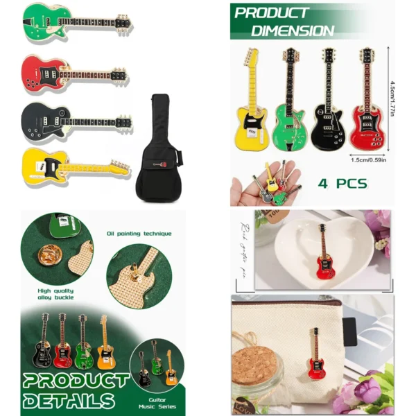 Este set de 4 broches de guitarra eléctrica MOPZIJA está pensado para quienes buscan un toque distintivo y duradero en su vestimenta. No son meros adornos pasajeros; son piezas de metal sólido diseñadas para resistir el uso diario en chaquetas, mochilas o camisas, aportando un aire genuino a tu estilo.