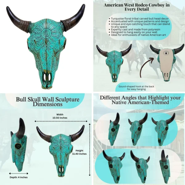 Para los que buscan una declaración visual audaz que combine la estética occidental con un aire gótico y alternativo, esta escultura de pared de calavera de toro con flores turquesas es una opción a considerar. Perfecta para añadir carácter a tu espacio personal, ya sea una habitación adolescente con estilo rústico o un rincón más oscuro y ecléctico.