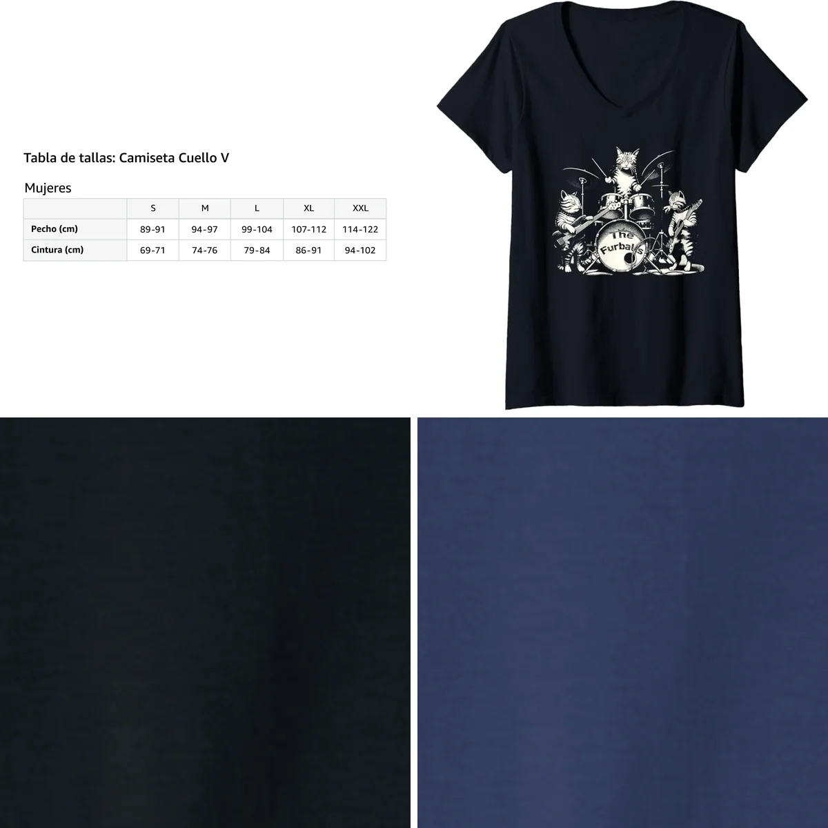 - Diseño: Estampado de gatitos con temática de rock/heavy metal, cuello en V.