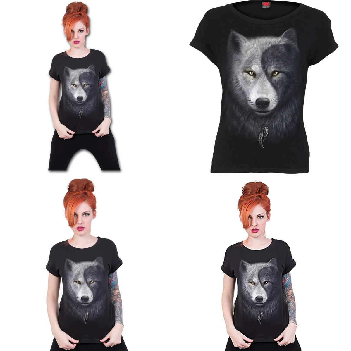 Esta camiseta de Spiral, con su diseño de lobo y escote barco, es una pieza clave para quienes buscan un estilo gótico, metalero o alternativo que trascienda la mera apariencia de ocasión. Diseñada para destacar en tu día a día o en eventos donde la actitud es primordial, su tejido robusto promete resistencia y una presencia imponente.