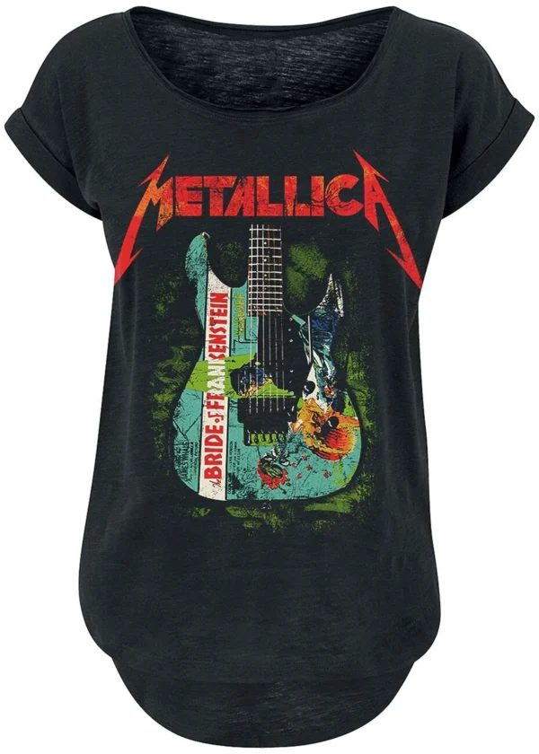 - Diseño: Impresión frontal de alta calidad del arte clásico de Metallica «Bride of Frankenstein». Los colores se mantienen vibrantes tras los lavados, según la comunidad.