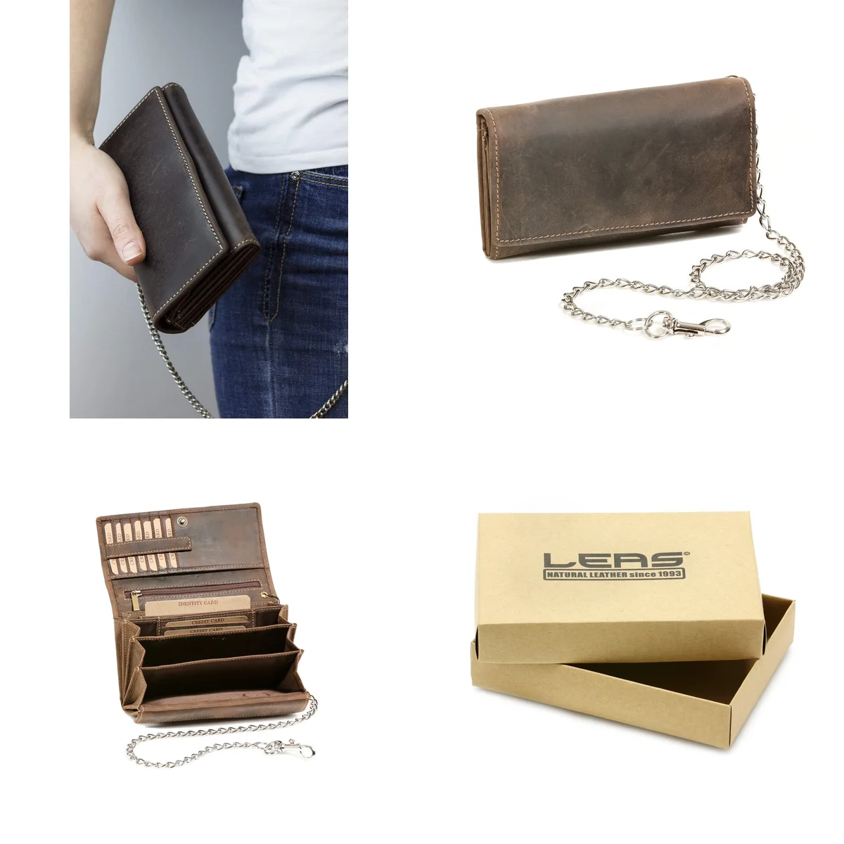 Esta cartera LEAS es para quienes aprecian la durabilidad y un estilo que habla por sí solo. Diseñada para el espíritu biker y trucker, su estética vintage y su construcción robusta la convierten en un accesorio que no pasa desapercibido. Perfecta para quienes buscan funcionalidad sin sacrificar carácter.