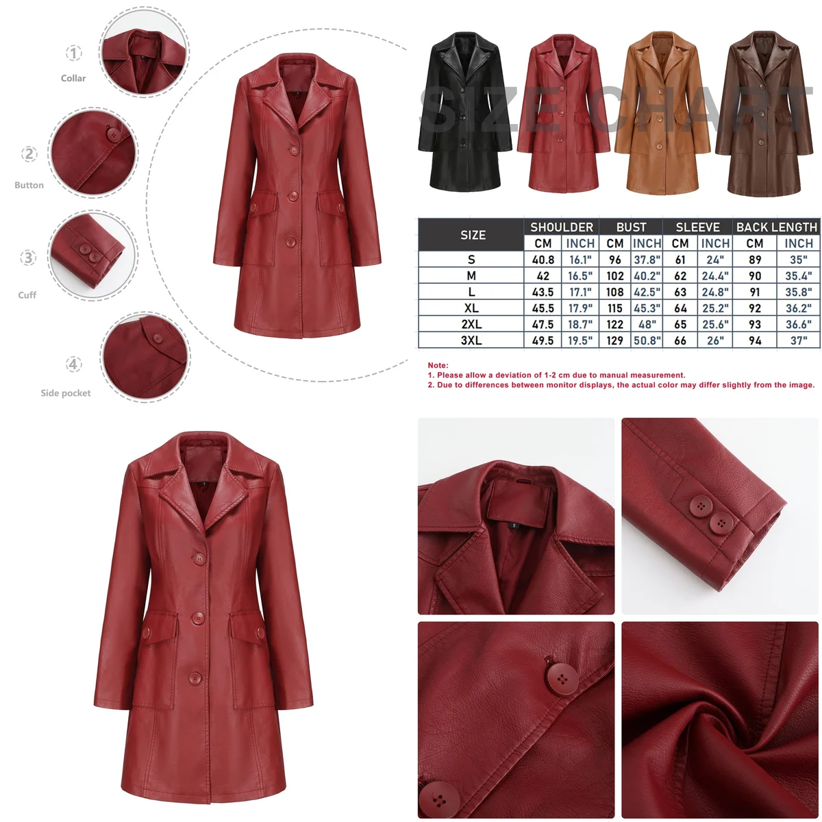 - Diseño: Corte largo con botones y cuello de solapa. Un clásico atemporal que estiliza la figura y aporta un aire de misterio y poder.