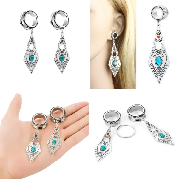 Para los devotos de la estética gótica, metalera, punk y steampunk, estas dilataciones de acero inoxidable con colgante de rombo vintage son una declaración audaz. Diseñadas para mujeres que buscan añadir un toque de rebeldía y elegancia oscura a su look, son perfectas para eventos temáticos, conciertos o para el día a día de quienes viven y respiran la subcultura.
