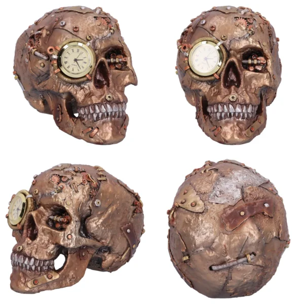 - Diseño: Calavera esqueletizada con estética steampunk, fusionando lo macabro con lo industrial.