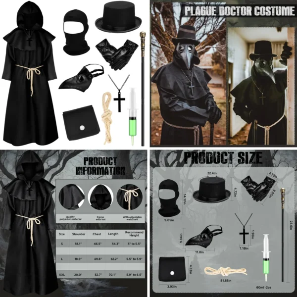 Este conjunto de 11 piezas de Toulite está diseñado para aquellos que buscan sumergirse en la estética oscura y misteriosa del doctor de la peste, perfecto para eventos de Halloween, cosplay o para añadir un toque teatral a tu estilo alternativo.
