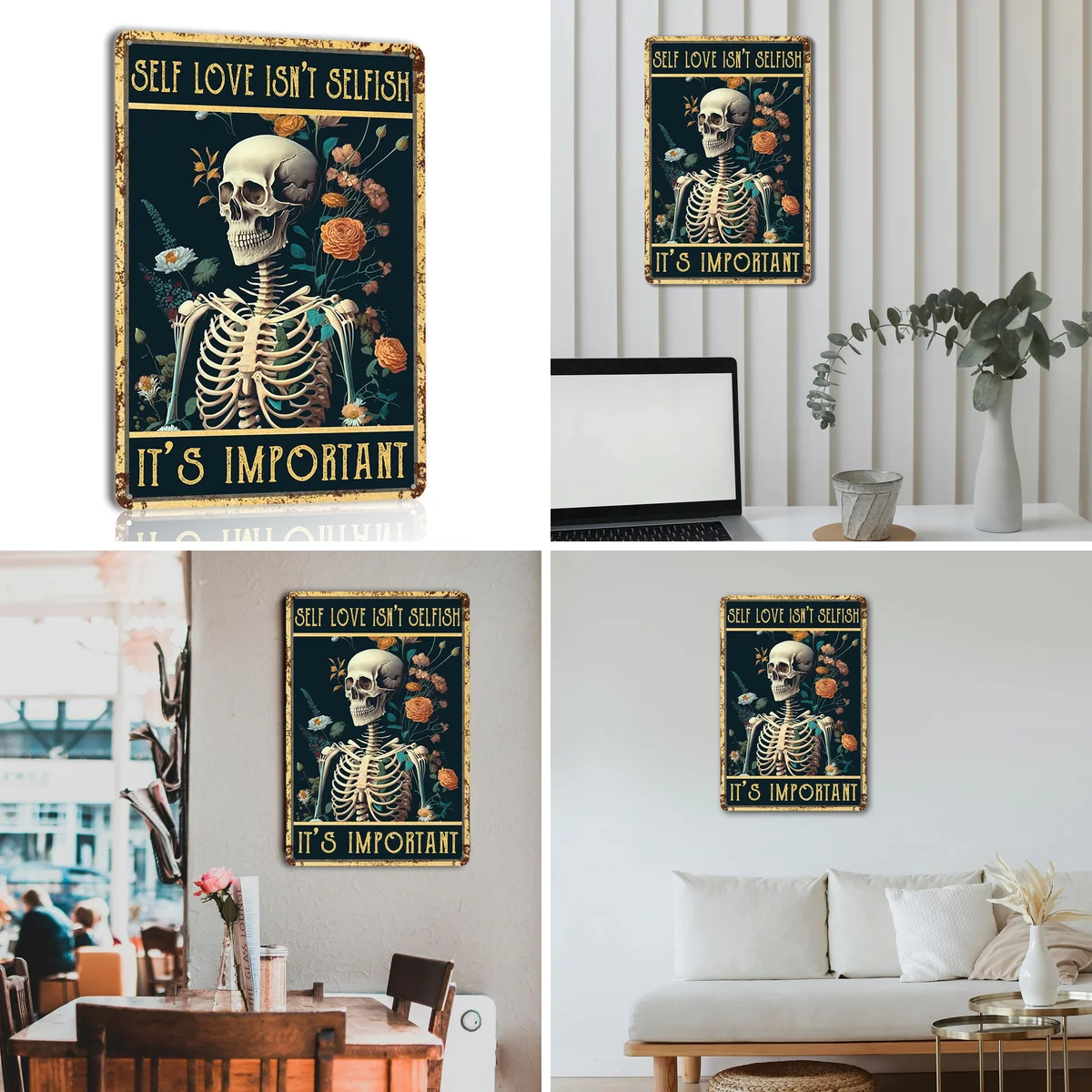Este letrero metálico retro con diseño de calavera de la marca kasitny es perfecto para quienes buscan inyectar personalidad y un toque oscuro a su decoración. Ideal para habitaciones góticas, espacios de trabajo alternativos, o como detalle inesperado en cualquier rincón que necesite un giro. Su estética se alinea con los estilos grunge, punk y rock, pero su versatilidad sorprende.