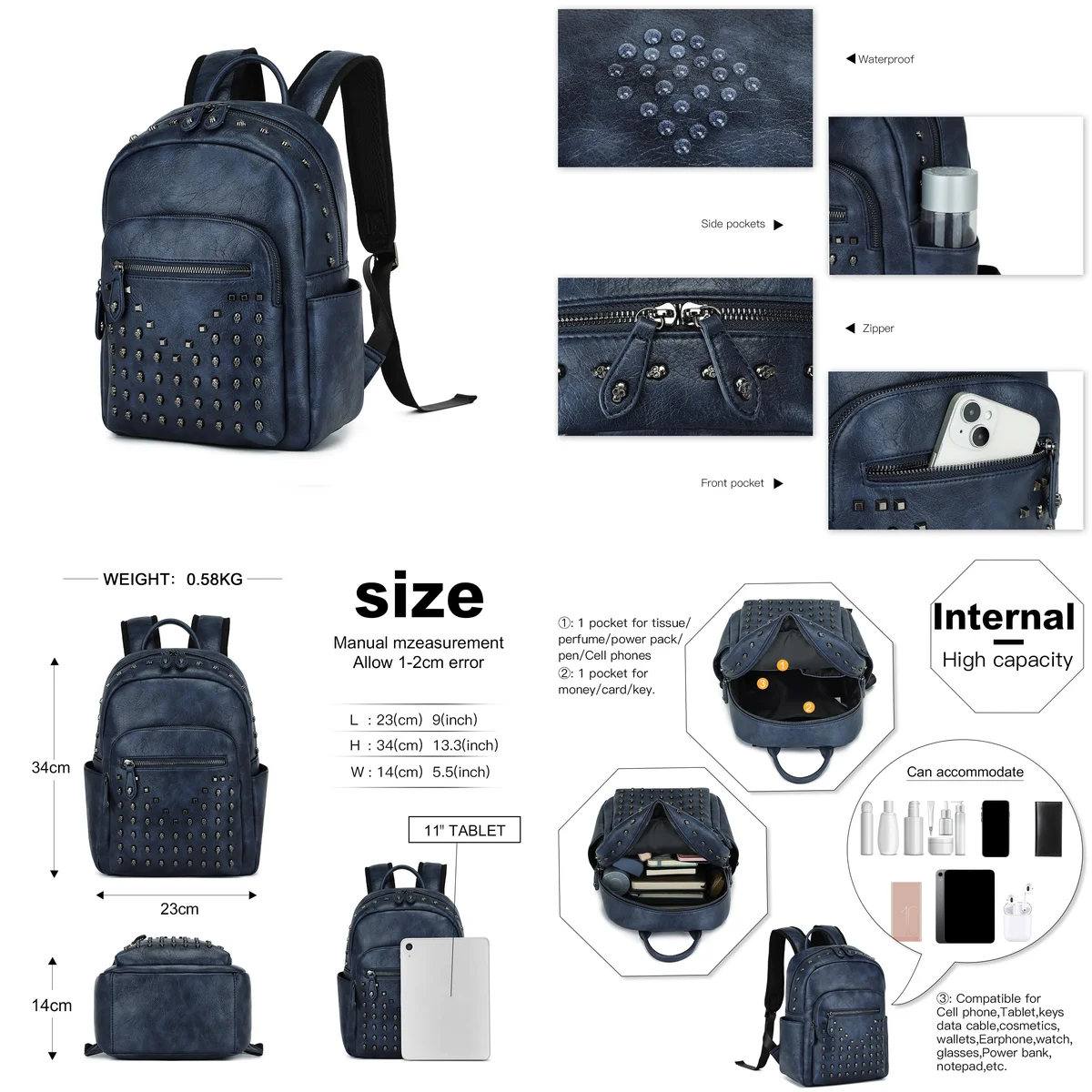 • Material Principal: PU (Poliuretano). Ofrece un acabado similar al cuero, resistente a salpicaduras y fácil de limpiar, ideal para el uso diario en entornos urbanos o eventos alternativos.
