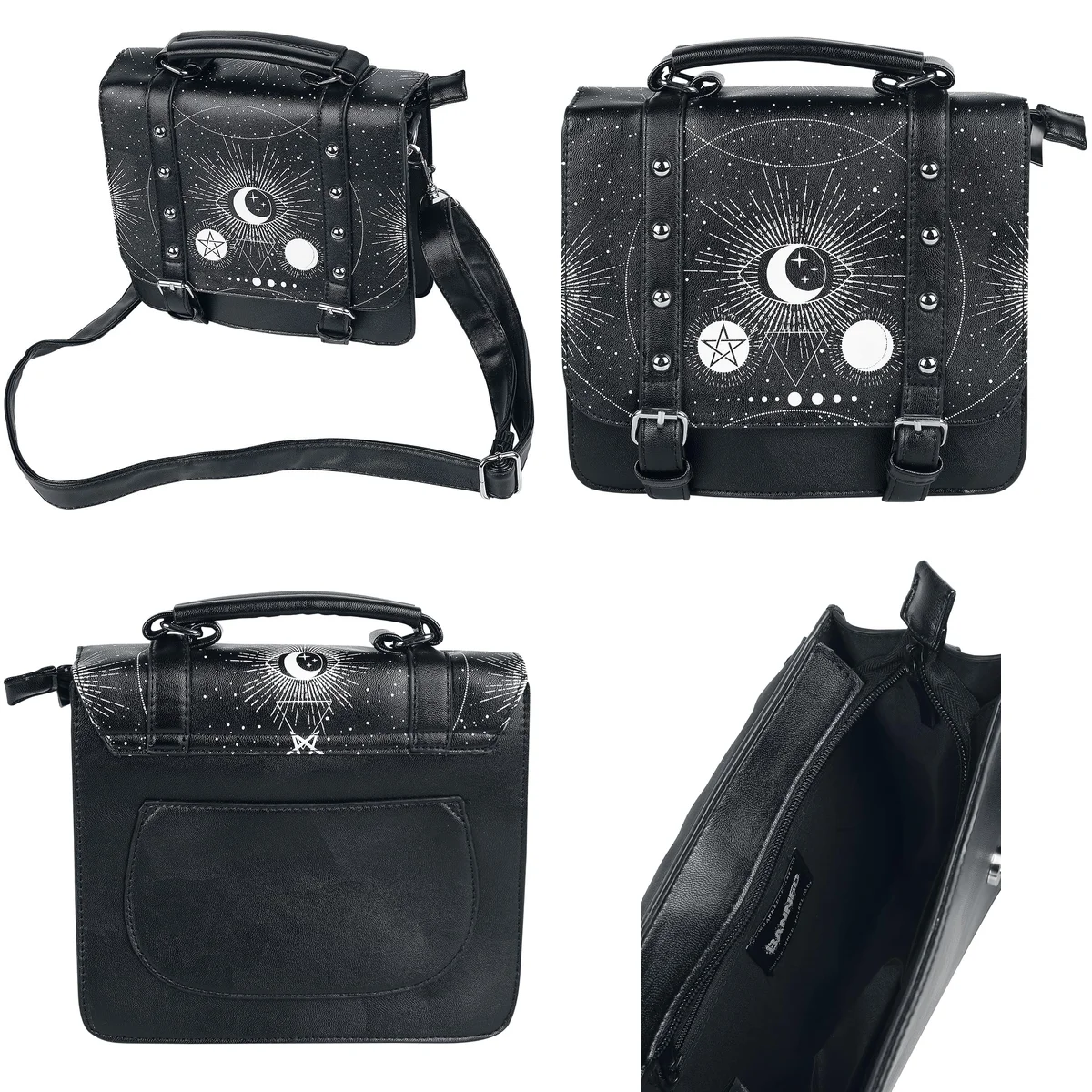 La Mochila Bandolera Banned Alternative Cosmic es la declaración de estilo que buscas para tu estética gótica, metalera o punk. Diseñada para quienes aprecian los detalles y buscan una pieza que destaque sin sacrificar funcionalidad, esta bandolera es tu compañera perfecta para conciertos, salidas urbanas o simplemente para llevar tus esenciales con un toque de rebeldía.