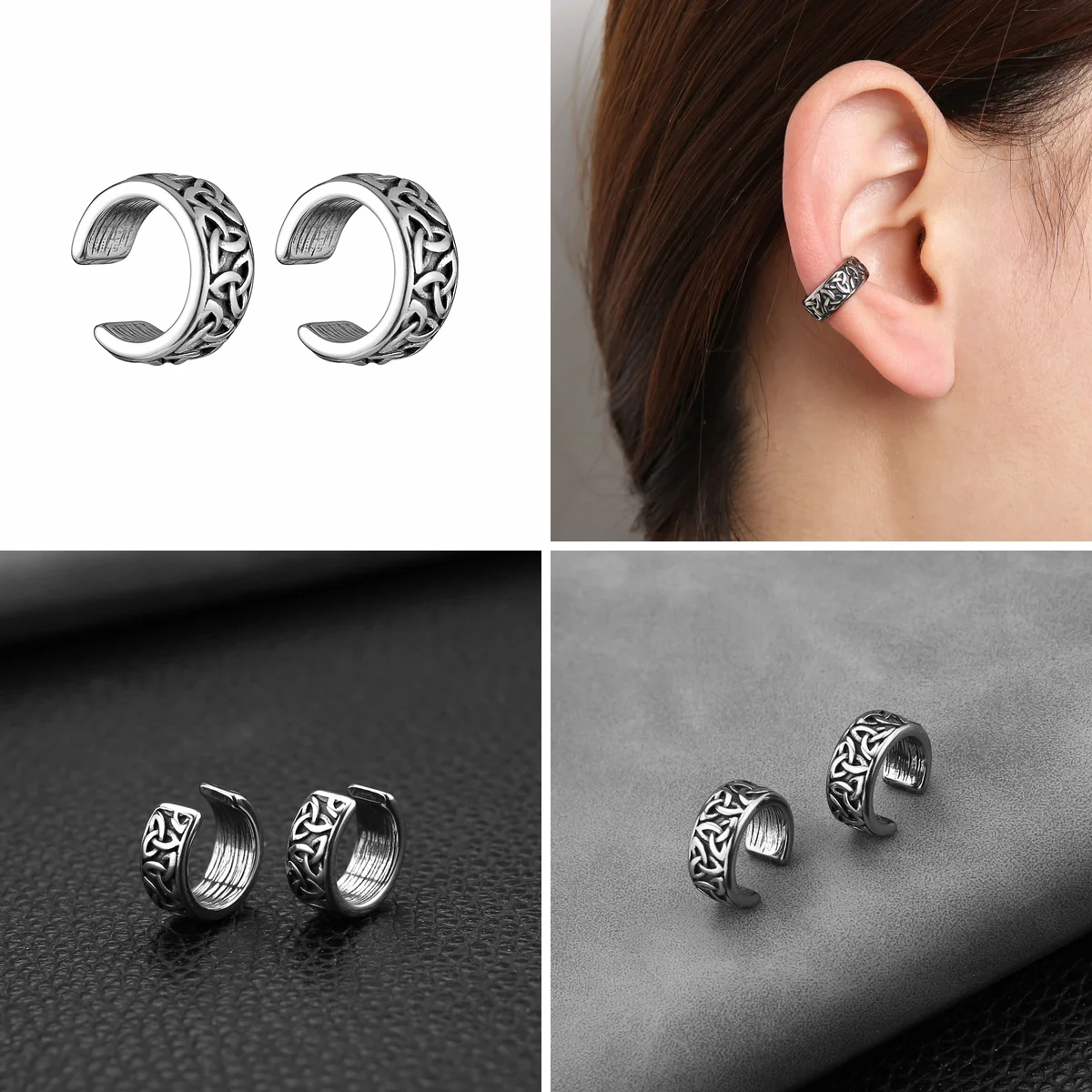 Pendientes de acero inoxidable con nudo celta. Comodidad y estilo gótico/punk garantizados. ¡Sin perforación, sin dramas!