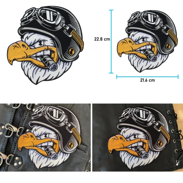 Este parche de águila de motorista de gran tamaño, con su diseño de puro desafiante, es la pieza que tu chaleco de cuero o chaqueta pide a gritos. Diseñado para quienes aprecian el detalle rudo y la presencia imponente, es el accesorio perfecto para solidificar tu identidad en la carretera o en tus eventos alternativos.
