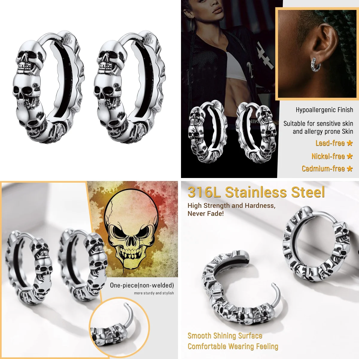Para los devotos de lo alternativo, para quienes buscan ese detalle que grita individualidad sin comprometer la piel. Estos pendientes de calavera y demonio de PROSTEEL, fabricados en acero inoxidable, son la pieza que necesitas para dar ese toque gótico, punk o de Halloween a tu look. Olvídate de reacciones molestas, esto es para llevarlo sin remordimientos.
