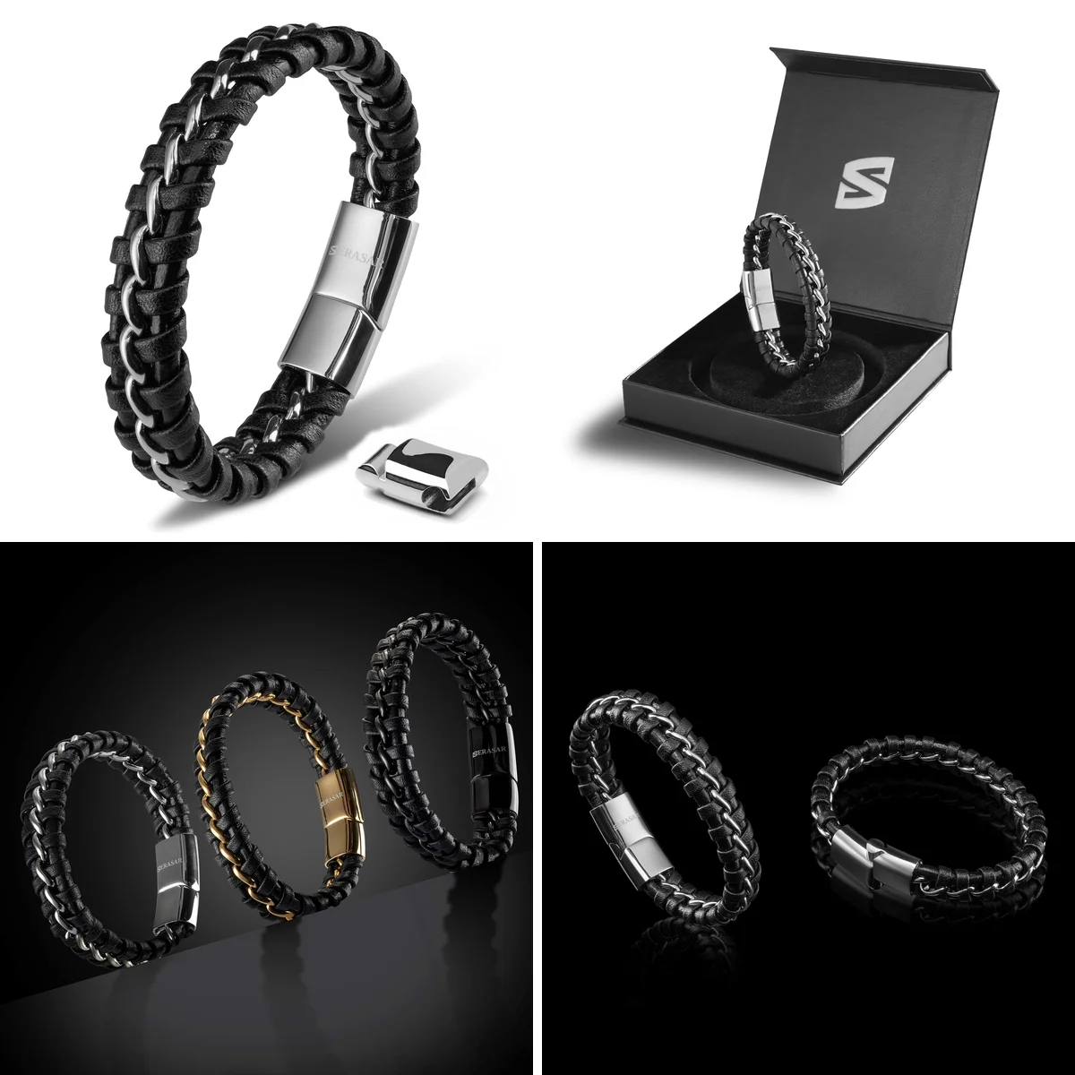 Descubre la pulsera de cuero SERASAR. Calidad premium, diseño seguro y tres acabados. Ideal para tu look alternativo.