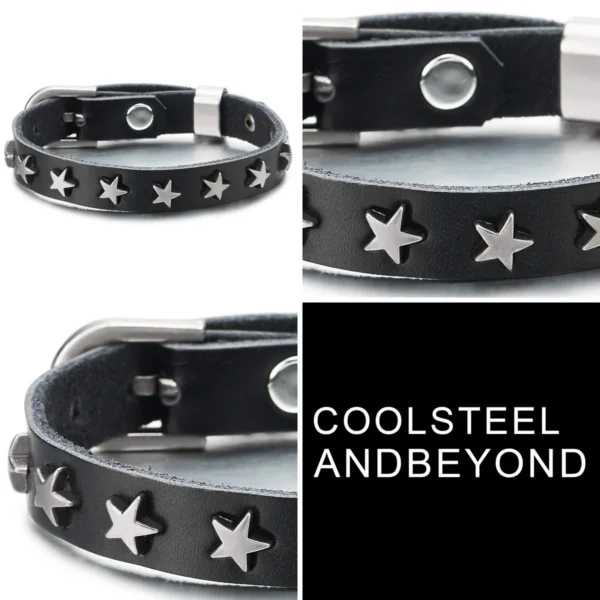 Estilo gótico y punk. Cuero negro con remaches de estrella. Cierre de hebilla seguro. La comunidad lo valora. Descubre si es tu próximo accesorio.