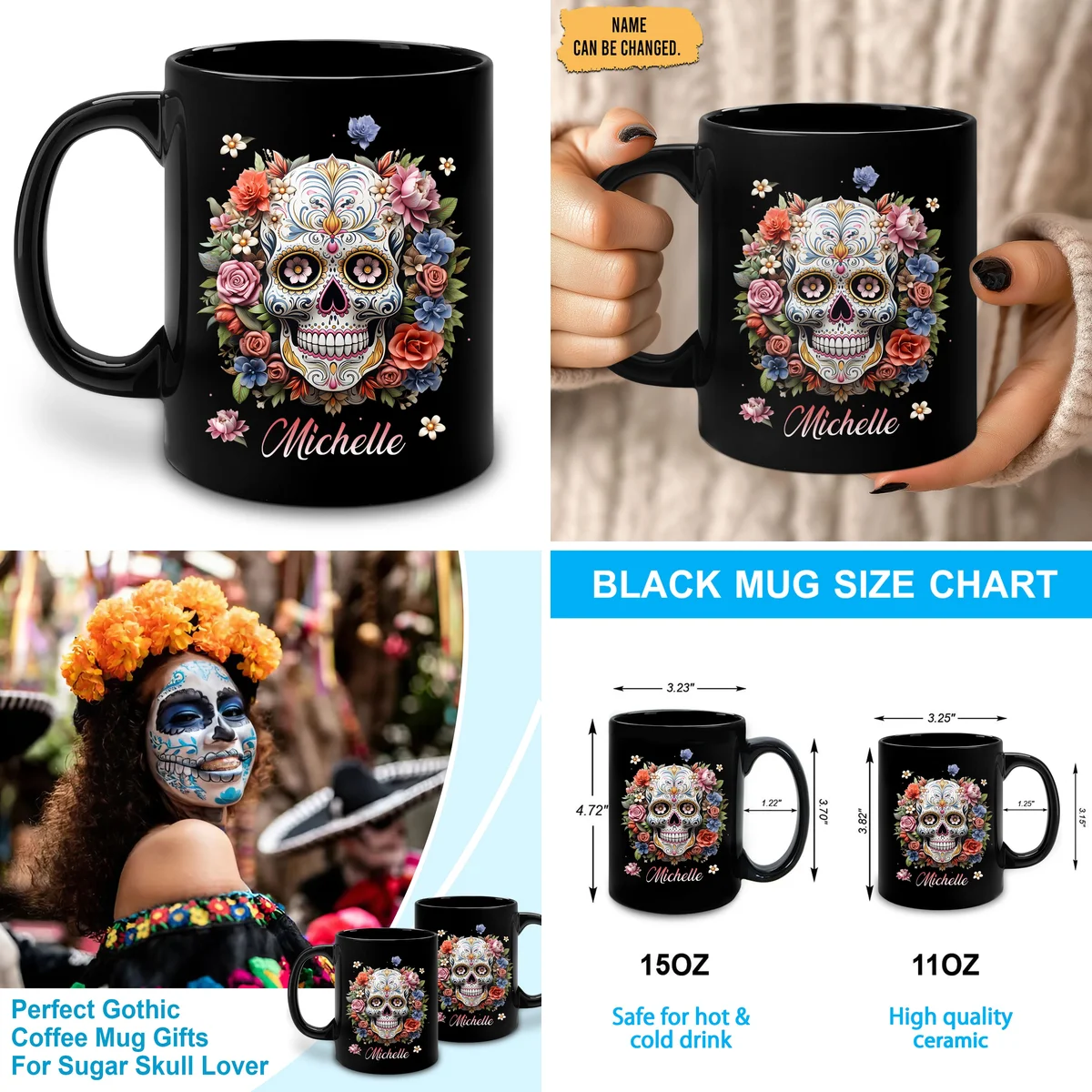 Para los que abrazan la oscuridad con estilo, esta taza de cerámica de Hyturtle es más que un recipiente: es una declaración. Con su diseño audaz de calavera floral, evoca la estética del Día de Muertos y el espíritu gótico, punk y rock. Ideal para quienes buscan un toque personal y alternativo en su día a día, o como regalo que realmente destaque.